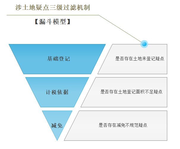 利用自然资源局土地不动产登记数据,加强城镇土地税源管理,从登记、减免、应税、核减、申报、缴款等环节逐一规范,自动比对分析纳税人在金三系统中土地税源“未登记、登记不规范、应税面积不足、减免不规范、核减不规范”等疑点,并对风险任务应对实现全过程闭环管理。